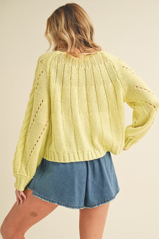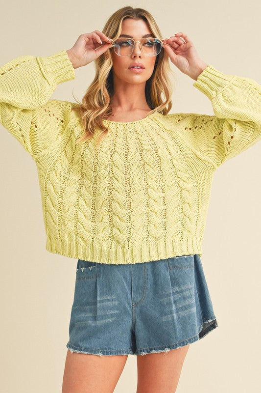 Aemi + Co Cable-Knit Openwork Round Neck Sweater