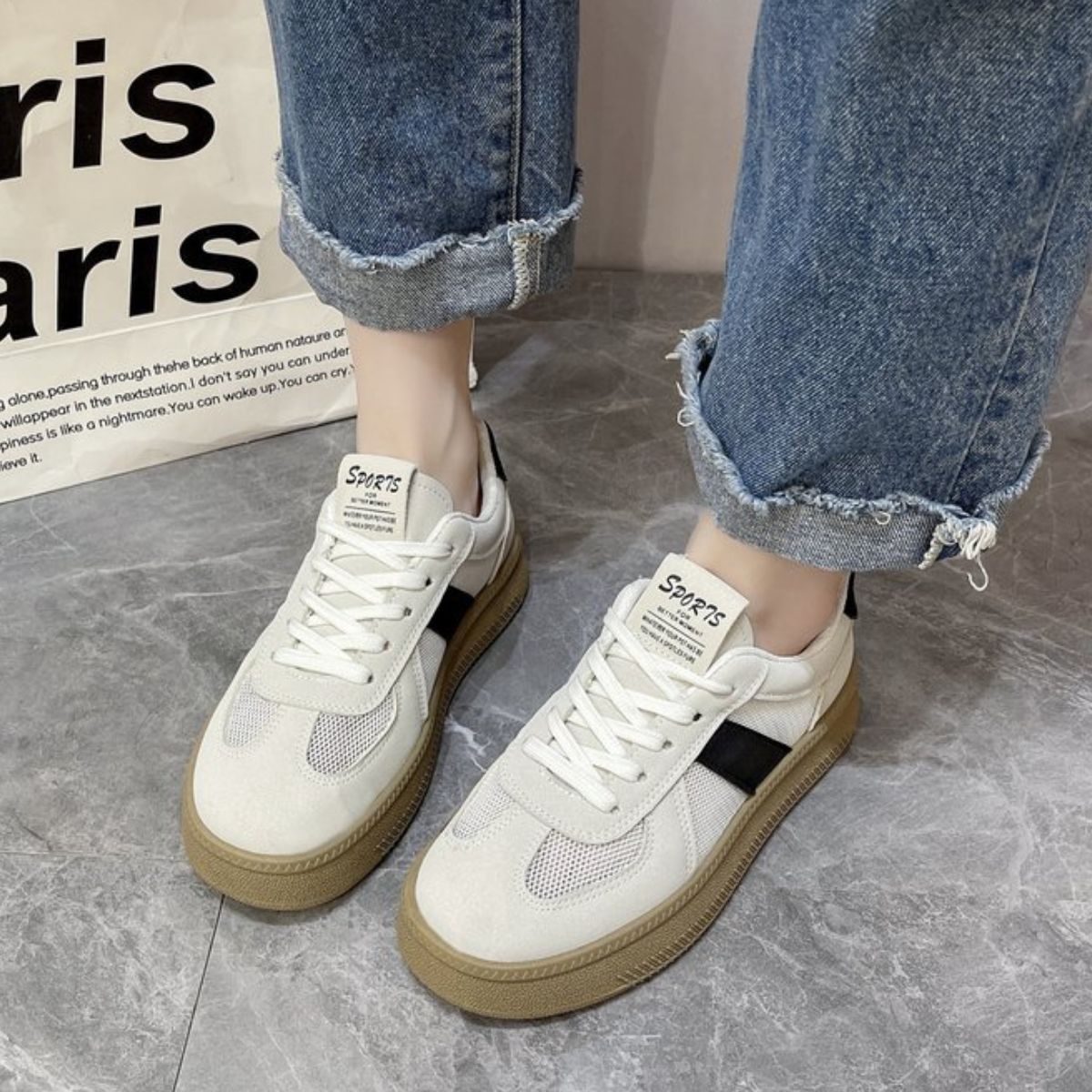 Contrast Breathable Mesh Lace Up Platform Sneakers