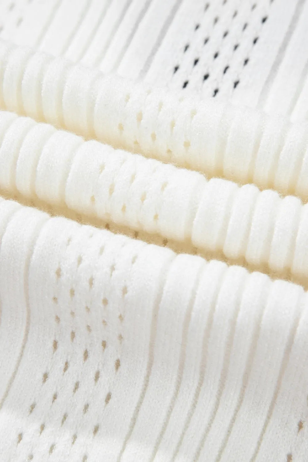 Contrast Trim Eyelet Knit V Neck Sweater Vest