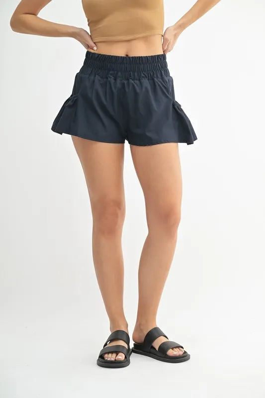 Smocked High Waist Shorts are stylish and feminine shorts featuring a smocked waistband that sits high on the waist. The smocked detailing provides a stretchy and comfortable fit while adding a touch of texture and visual interest. These shorts are perfect for creating a flattering silhouette and can be dressed up or down for a variety of occasions. Stay on-trend and comfortable with these chic high-waisted shorts.