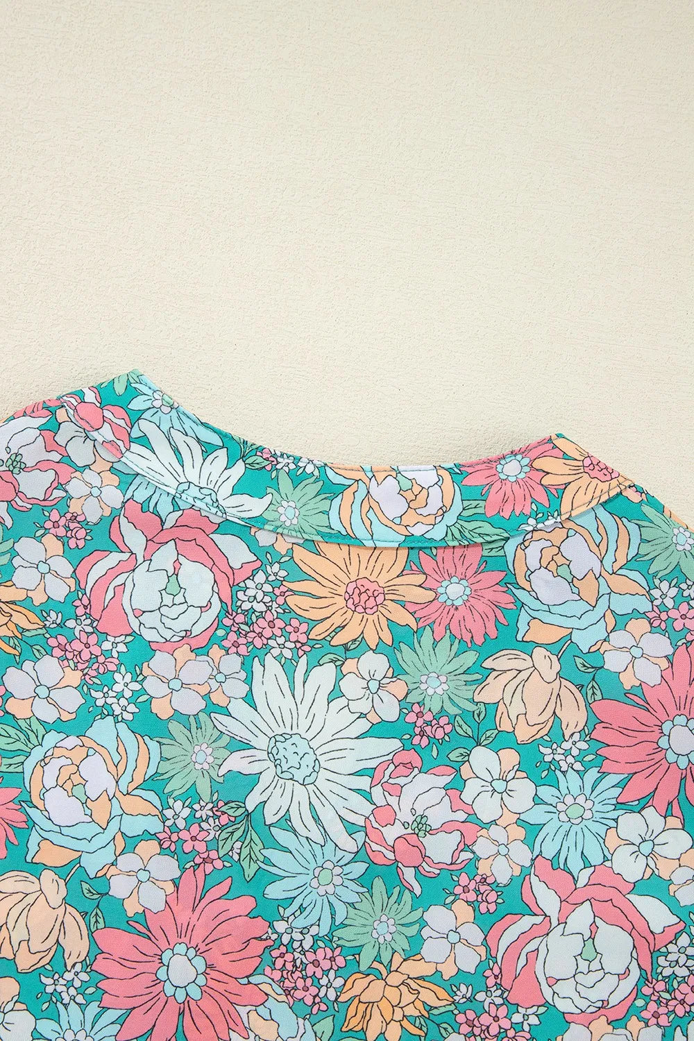 Multicolour Notched Neck Puff Short Sleeve Floral Blouse