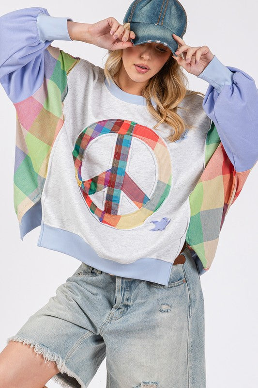 SAGE + FIG Contrast Peace Patch Dropped Shoulder Sweatshirt