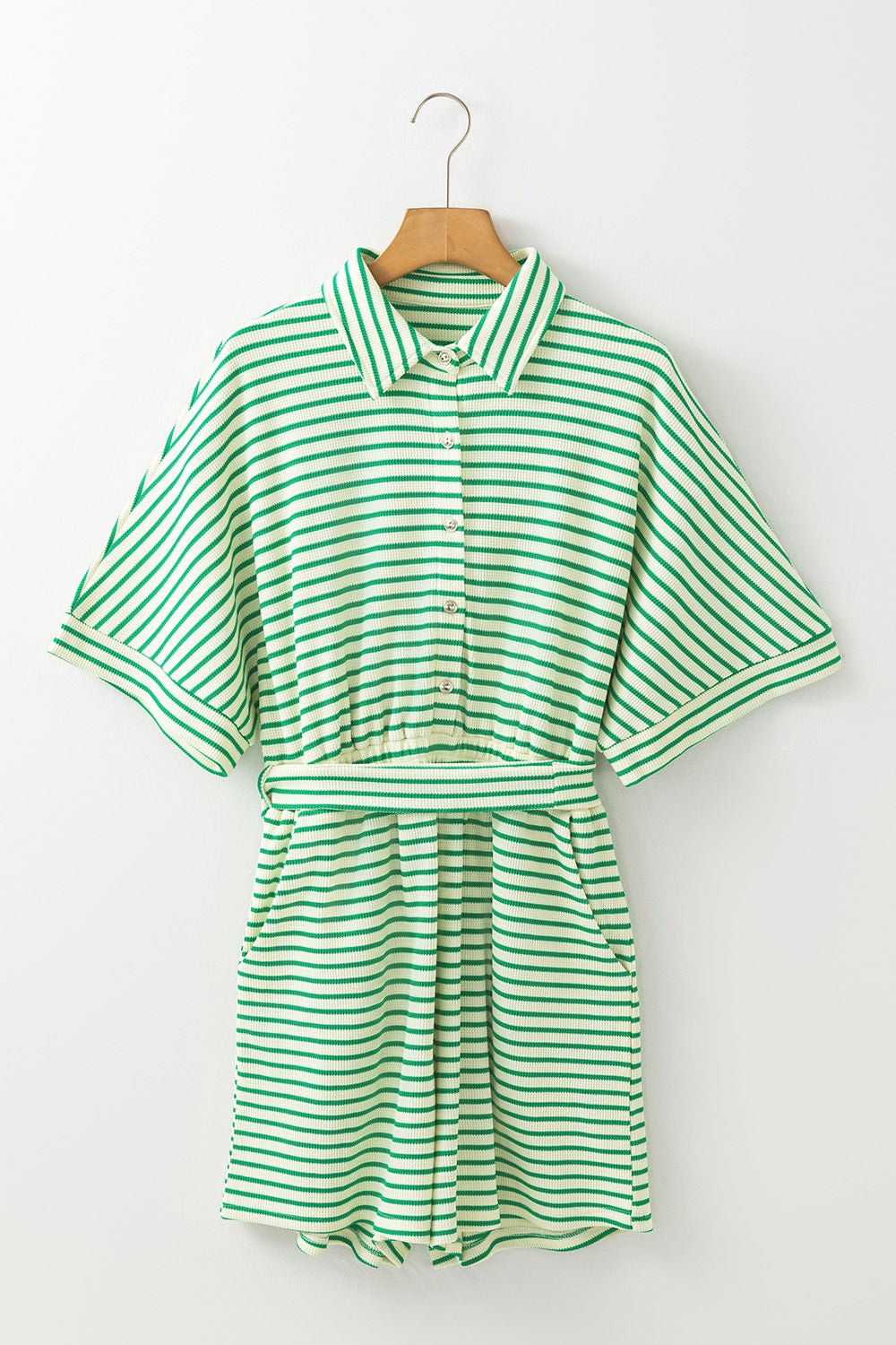 Striped Half Sleeve Tie Waist Romper