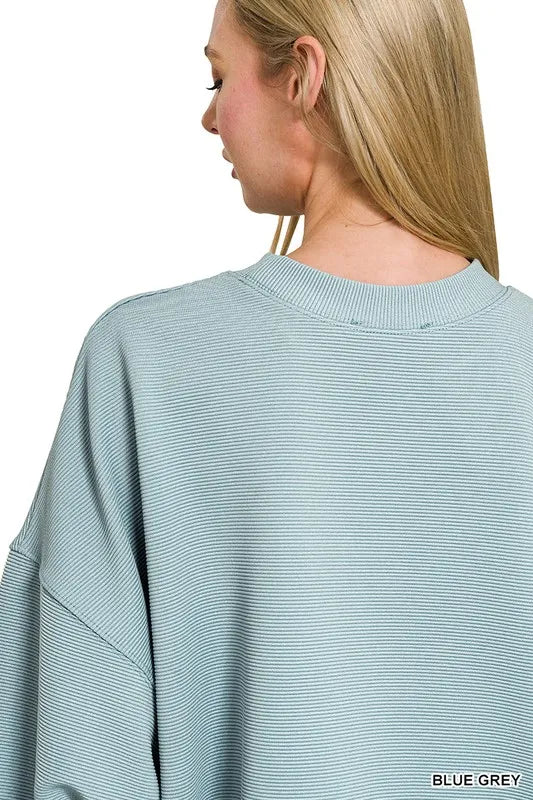 Zenana Ribbed Balloon Sleeve Sweatshirt