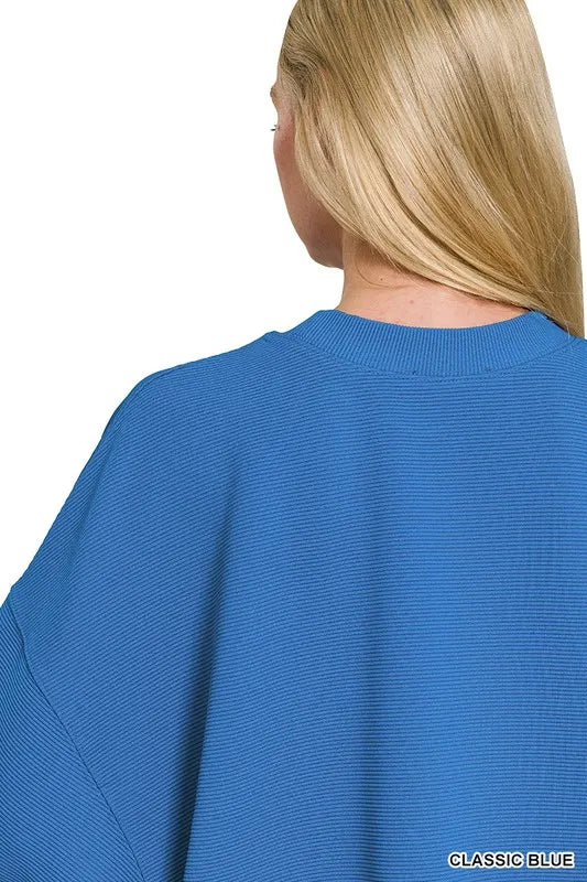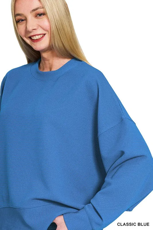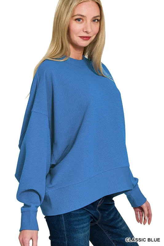 Zenana Ribbed Balloon Sleeve Sweatshirt
